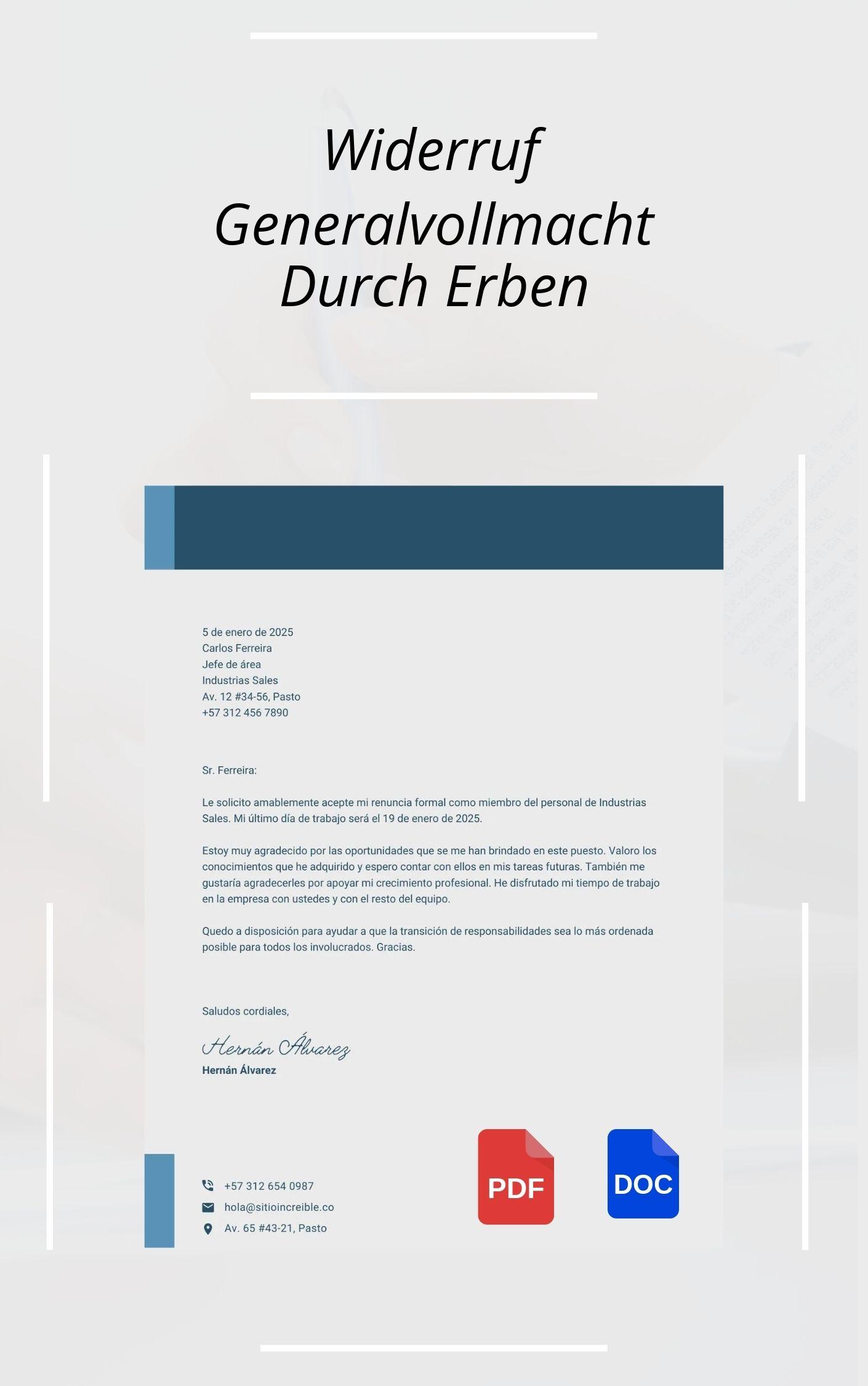 Indem Sie diese Anleitung befolgen, können Sie den Widerruf der Generalvollmacht durch Erben korrekt durchführen und sicherstellen, dass Ihre Handlungen den rechtlichen Anforderungen entsprechen.